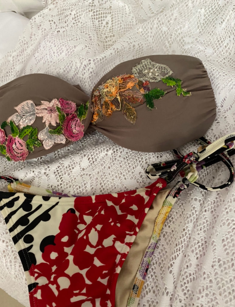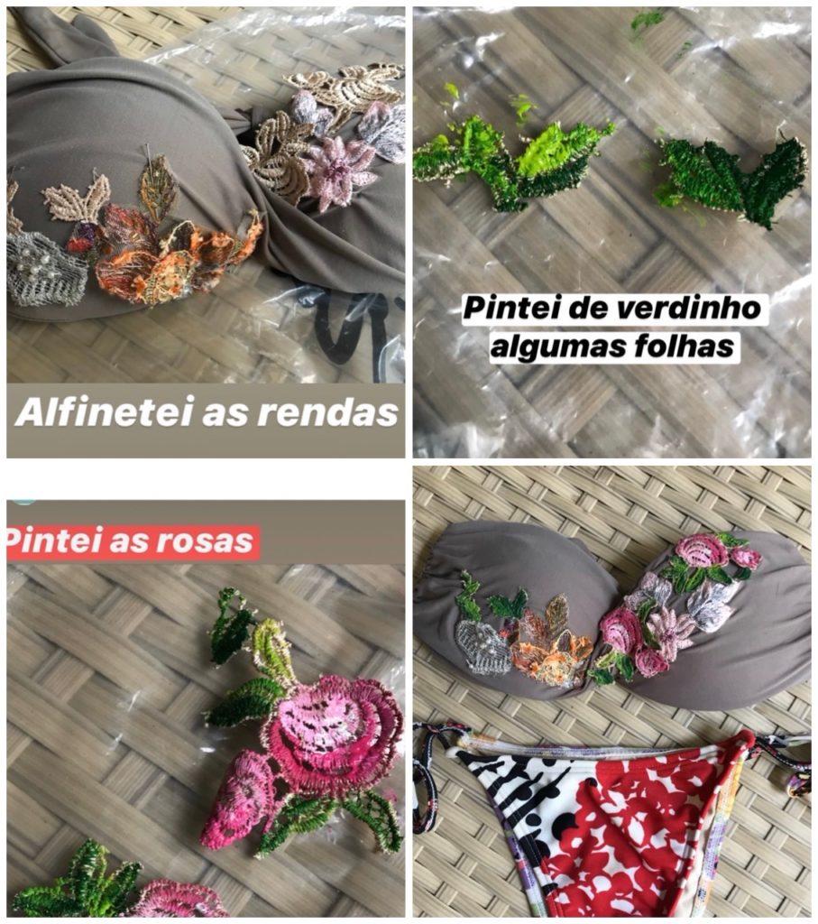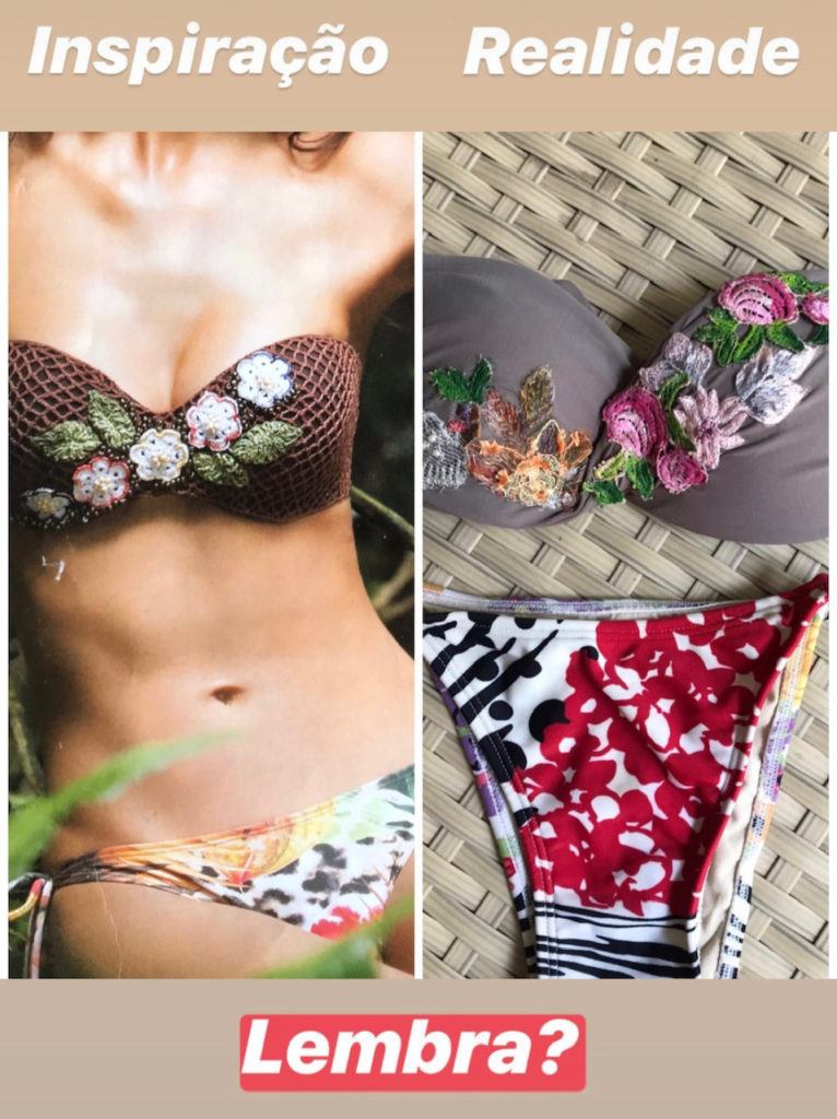 Usei esse mesmo biquini com a mesma saída branca 2 vezes. O mais legal é mostrar para vocês que eu mesma customizei o top com rendas segundo a inspiração abaixo.