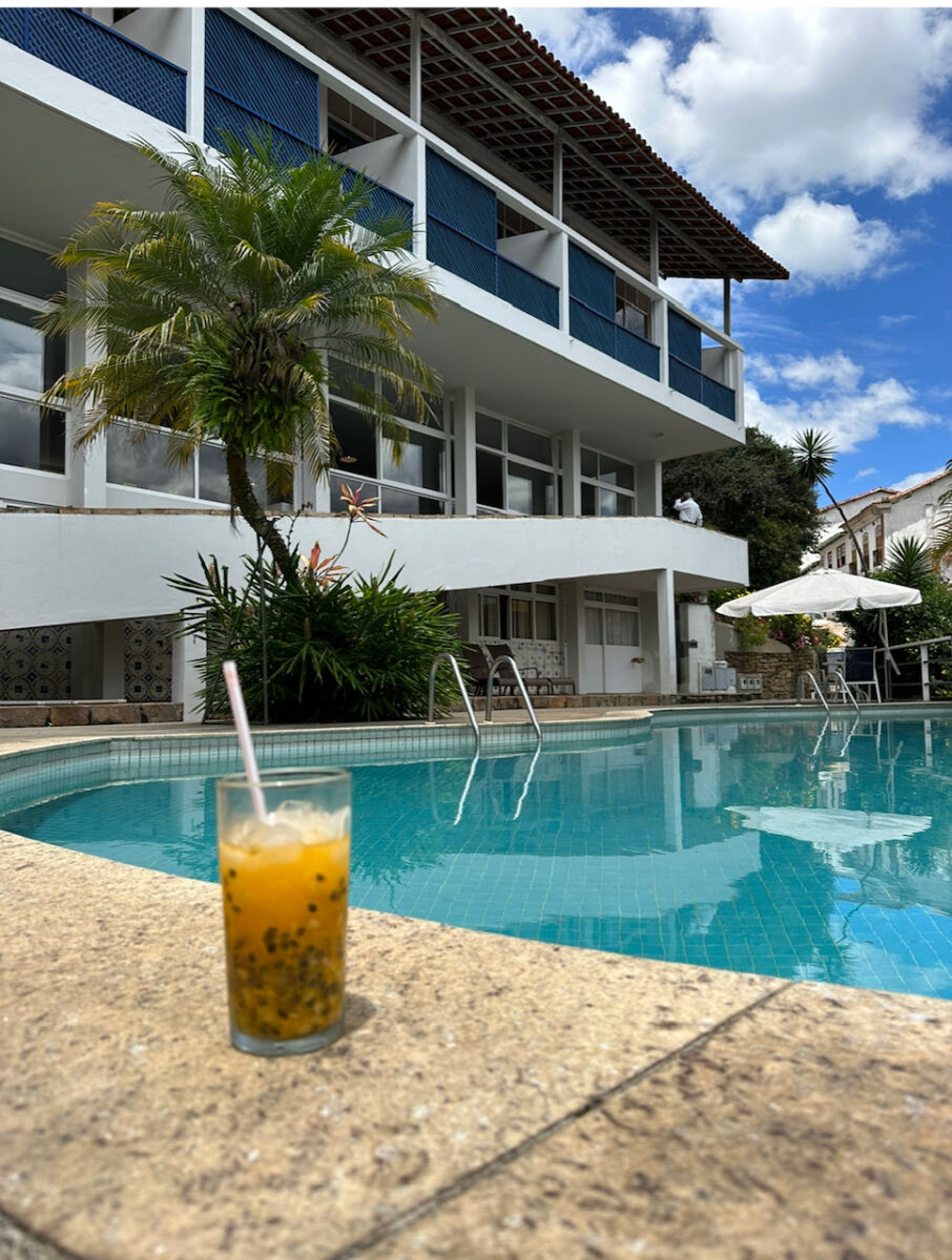 Como o clima é TROPICAL DE ALTITUDE ÚMIDO, os dias são quentes e as noites são frias. Portanto, aproveitar a piscina é um privilégio raro na cidade. São poucos os hoteis que têm piscina e garagem, como esse.