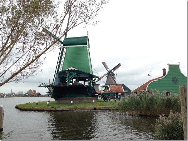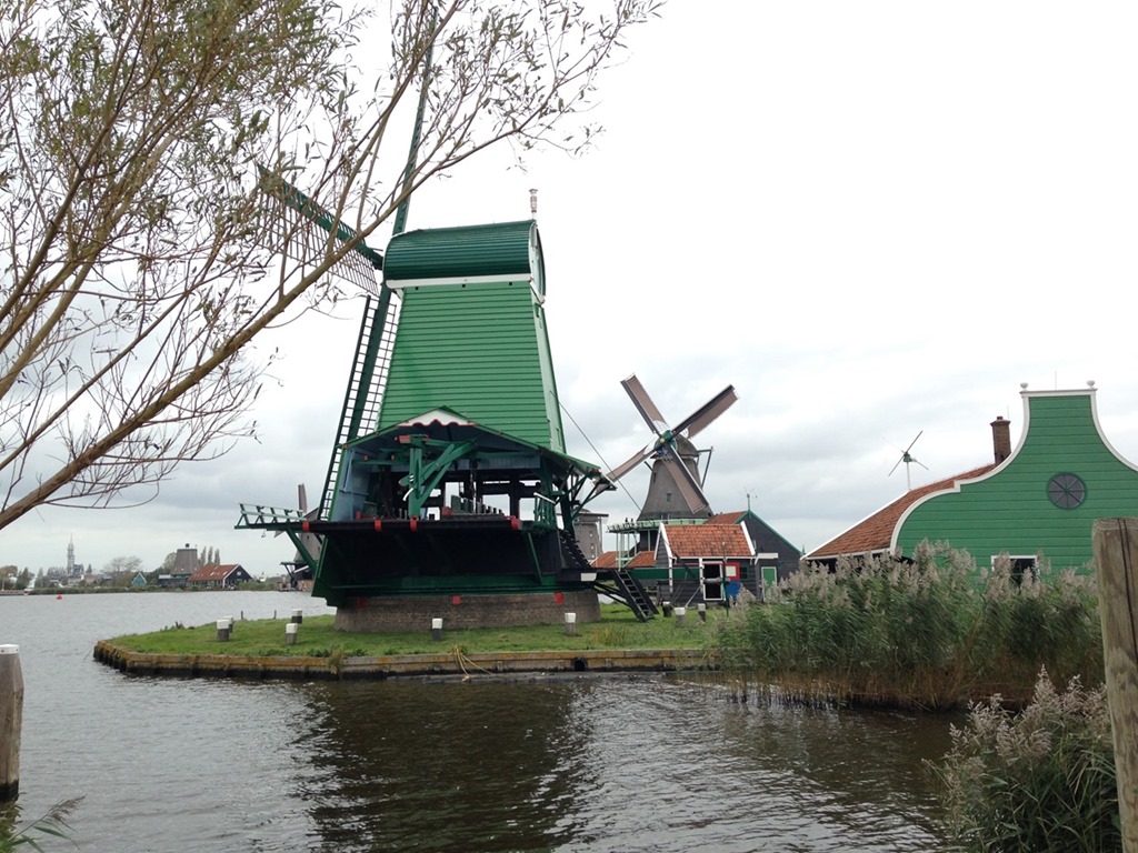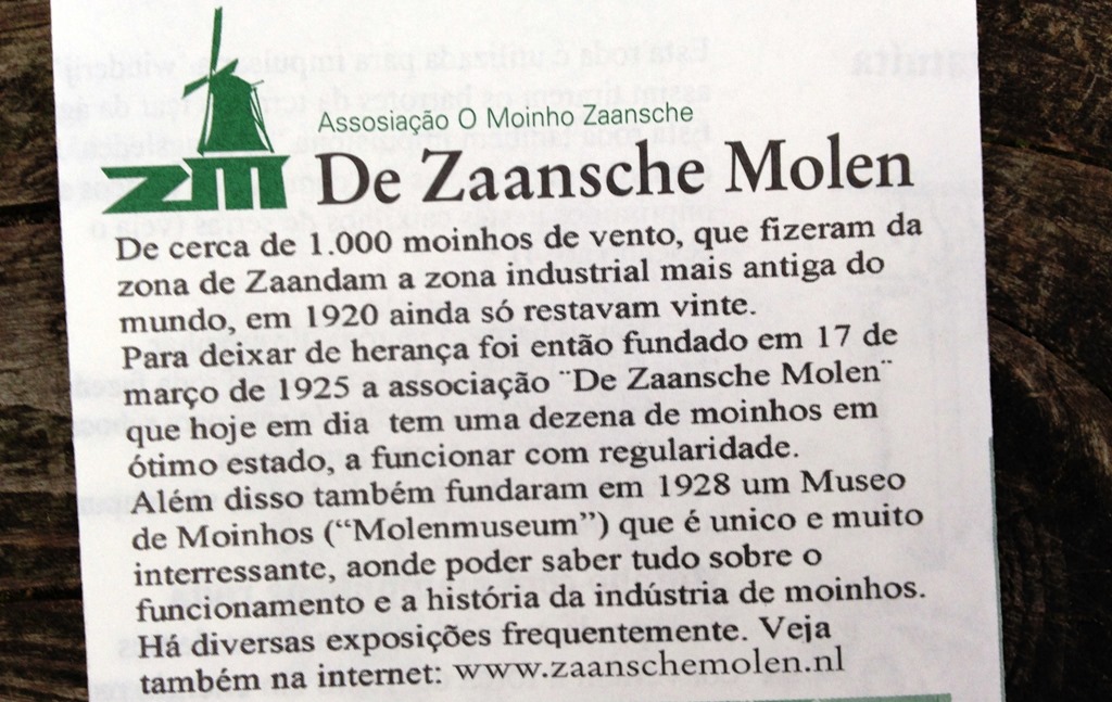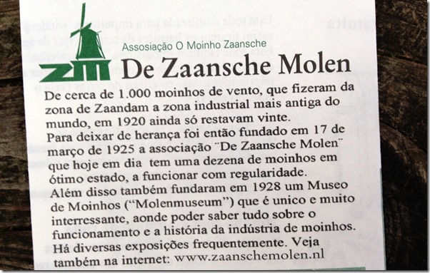 Os moinhos de lá são históricos e tiveram diversas funções na indústria holandesa, processando matéria prima que vai de pigmento a mostarda (aliás, ainda é vendida nos supermercados uma mostarda processada em Zaanse Schans). Hoje a renda do local vem de turismo (75% ) e 25% apenas da produção dos moinhos. Eles encontraram um nicho especializado em cortar madeira em polegadas, e com isso, vendem madeira para a restauração de prédios atigos no mundo inteiro. Bem pensado, ne? Máquinas cortam muito mais madeira em muito menos tempo, porém no sistema métrico! Os moinhos da Holanda são os únicos do mundo em madeira, pois se fossem feitos de tijolos como é de costume, afundariam com seu peso nos pântanos encharcados de todo o país.