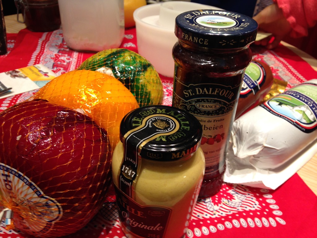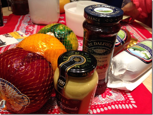 Isso mesmo: 1 para 4 !!!! E eles comem queijo com mostardas e geléias variadas , junto com biscotinhos ou torradinhas de queijo! Essa foi a combinação que mais gostei: Mostarda ao mel MAILLE e geleia de frutas vermelhas DALFOUR! Trouxe tudo …rsrs… sou temática mesmo! rsrs