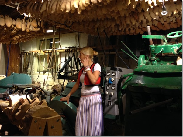 Em seguida, a visita segue de barco atravessando um lago artificial gigantesco ( o maior da Europa ocidental! ) até a vilazinha MARKEN, onde visita-se uma fábrica de tamancos de madeira. Sim, eles ainda são usados , pois é a única maneira de andarem nas fazendas sem atolar “ literalmente “ na época de chuvas! Lembra que é tudo um pântano?