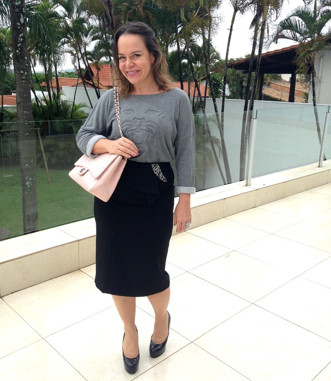 moletom H&M Paris – saia MARES BLACK LABEL – bag CHANEL – scarpins YSL