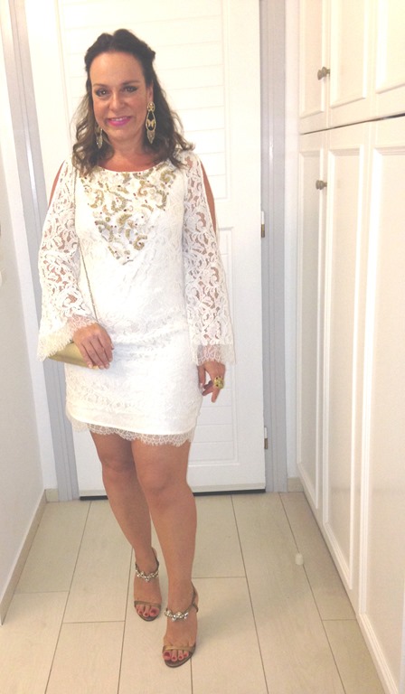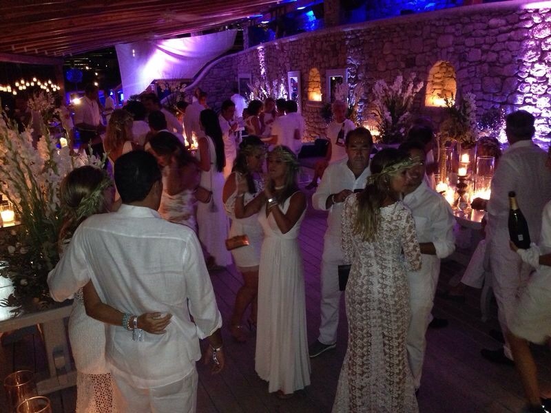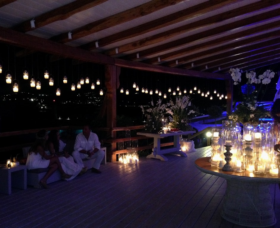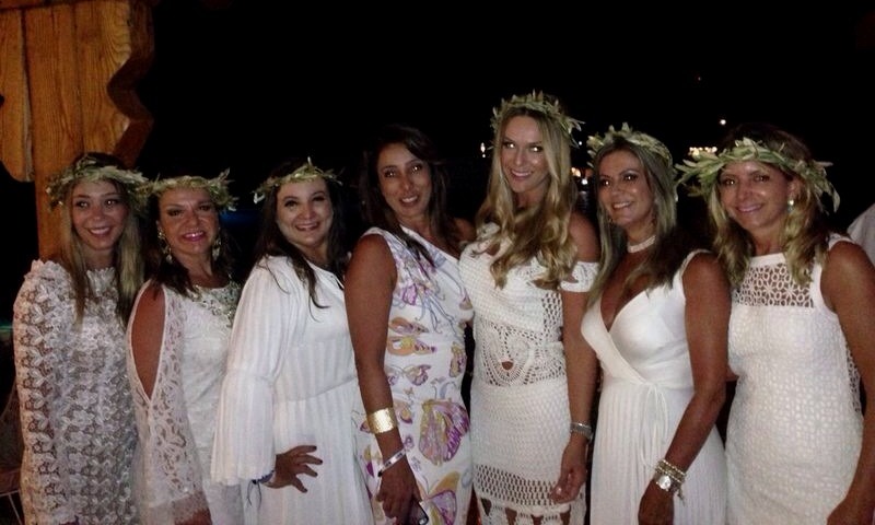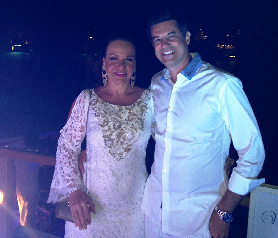 A festa mesmo aconteceu no sábado dia 9 , no belíssimo Hotel Santa Marina, em ORMOS BEACH. O traje pedido era branco, como era todo o deslumbrante decor. Fui de vestido de renda Eduardo Amarante para Capadossi, sandália MARES, bolsa vintage e JOIAS PD. Errei no sapato, pois a maioria estava de spadrille mesmo… but… logo logo tava todo mundo de havaianas, na maior descontração.