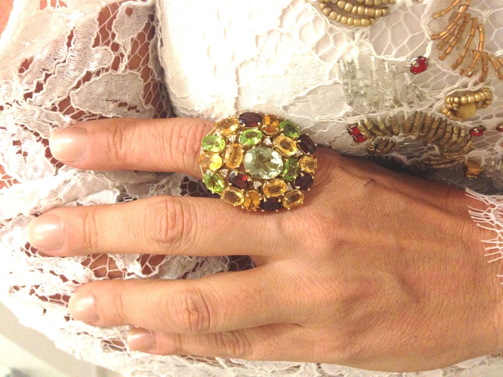 esse anel de pedras combinou com os bordados do vestido