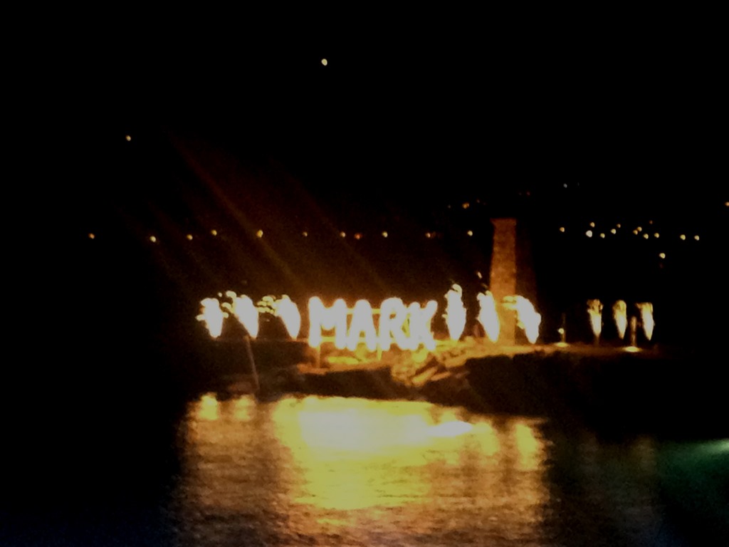 E aí começou a coisa mais legal de todas : o show de laser voltou a ser projetado na montanha, mas dessa vez com mensagens da Anna Vitória para o Mark e convidados, uma coisa surreal de linda! Palavras super simbólicas : JOY – DANCE – WELCOME – BRASIL – MALTA – EUROPE – em meio a declarações dela para ele. Ele deve ter A-M-A-D-O!!!