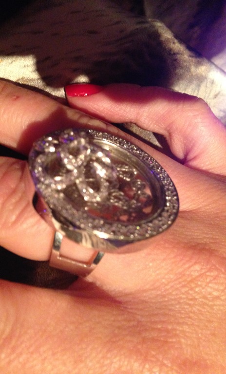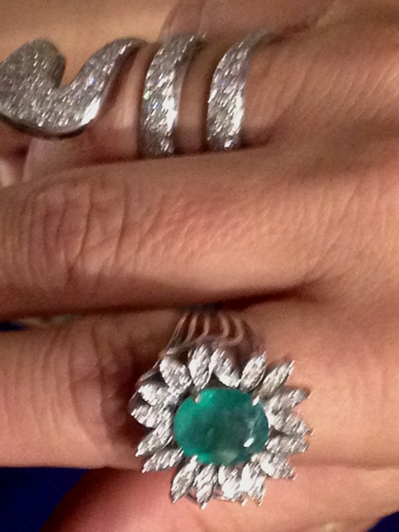 Embora as joias fossem glamourosíssimas, olha que detalhe fofo! Flávia usou no meio das big jóias , o 1o. anelzinho de esmeraldas super singelo que ganhou do namorado Olavo – uma homenagem a ele, e à linda família que começaram a construir desde lá.