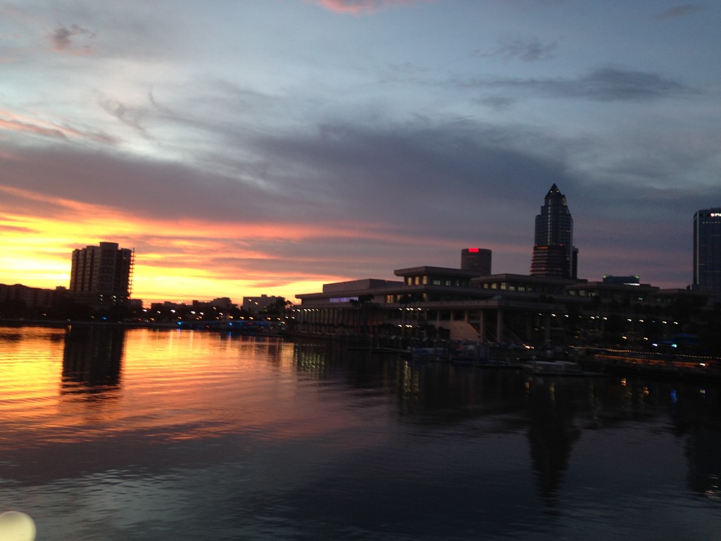 Vale a pena ir para a marina que fica linda assim na hora do por-do-sol . Do deck do JACKSON´S ( comida japonesa e frutos do mar ), você vê essa vista de camarote . Aliás, peça uma mesa na varanda e veja TAMPA se transformar nessa “pintura” em questão de minutos.