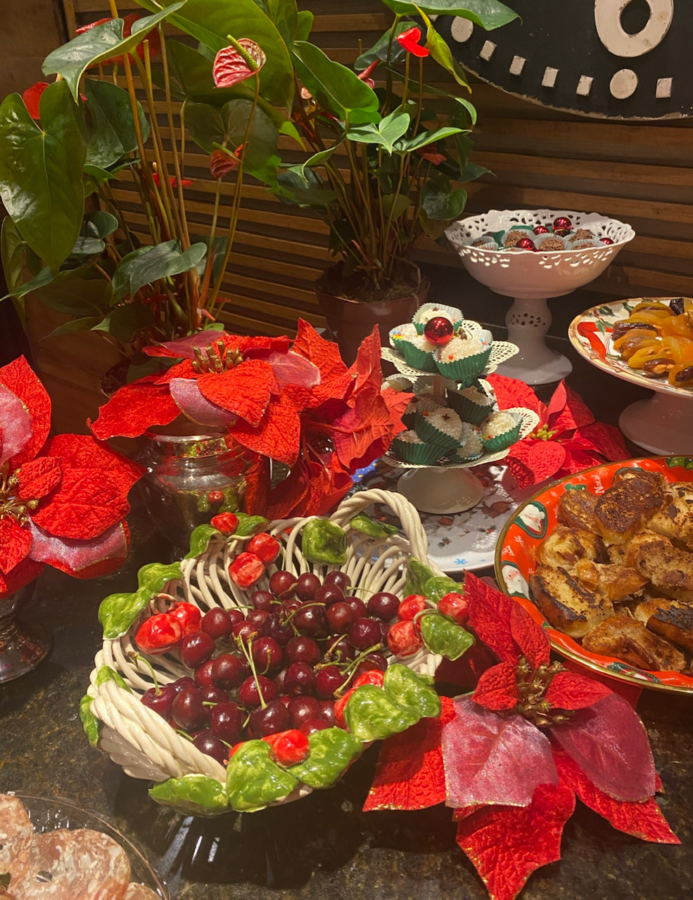 E mais: frutas frescas e secas, assim como panetone, rabanadas e os docinhos, que já ficam logo ali.