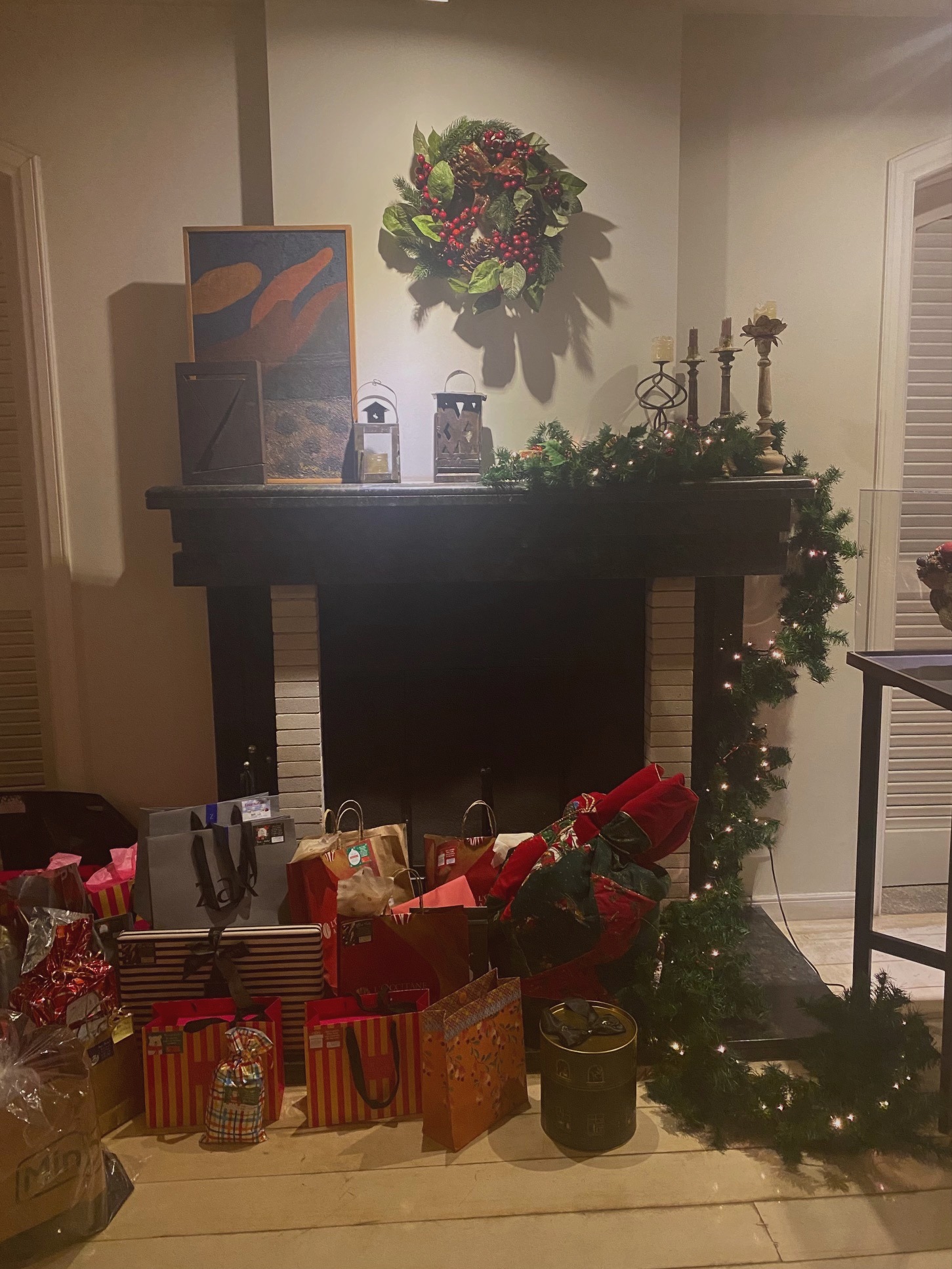 A decoração da lareira também muda a todo ano, ao passo que é lá que é feita a oração e a troca de presentes.