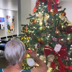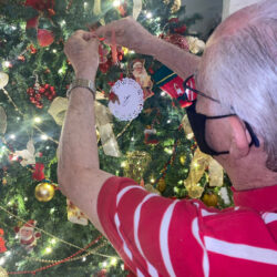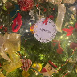 Todo ano gosto de providenciar algo que envolva as pessoas com o verdadeiro sentido do Natal. Nesse ano, cada pessoa que chegava no dia, ia anotando seu nome numa forminha rendada e pendurava na árvore, deixando-a repleta de gente que a gente ama e esteve na nossa casa nessa época tão linda.