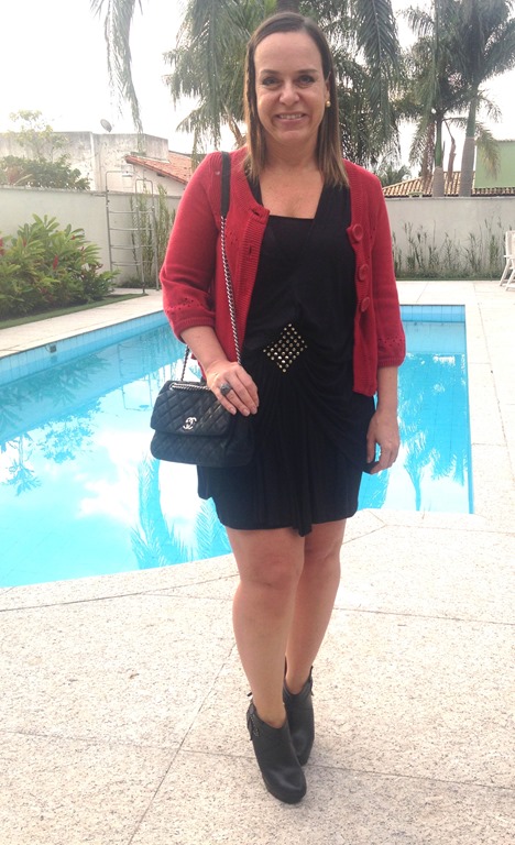 Hoje à noite que vai acontecer a tradicionalíssima Noite de Prêmios que o Jornal Estado de Minas promove todos os anos em prol da Jornada do Menor. Na 3a. passada , o encontro das patronesses responsaveis pela venda das mesas aconteceu na Deck Sol, em Lourdes. Para esse encontro às 17 horas, pensei em um look simples, e como ele tinha as tachas redondas, achei que estender essa linha bolas para as jóias seria uma boa.