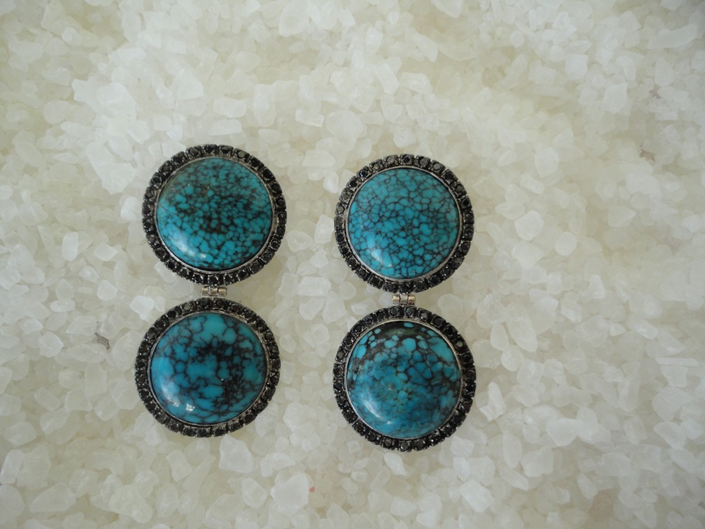 Esse árduo e sério trabalho que a Nazareth, Anna Marina, Isabela Teixeira da Costa e equipe fazem, merece mesmo o apoio de todo o comércio da cidade. Várias designers e joalheiras doam peças para as rodadas, e dessa vez, a peça selecionada foi um brinco de turquesas rodeado por brilhantes negros- peça única – design JÓIAS PD –