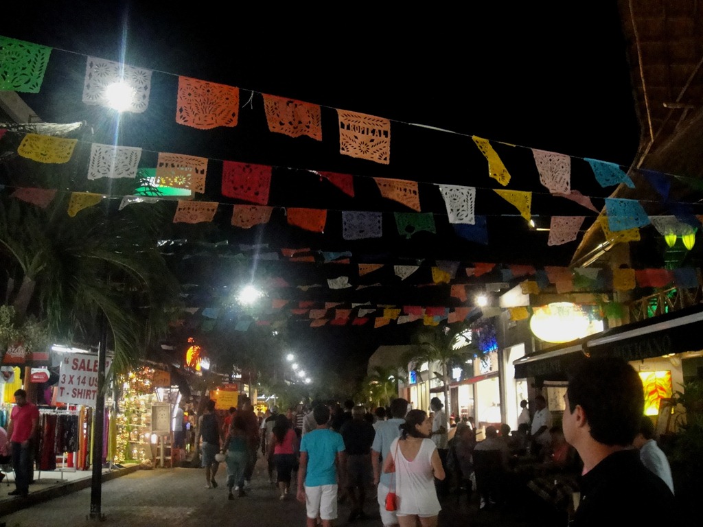 No começo da noite, o programa é bater perna na Quinta Avenida, a rua das lojinhas e restaurantes . Os melhores estão entre as calles 12 e 14, onde ficam tambem algumas discos. Entre elas, a famosa Coco Bongo, local totalmente turístico, mas dizem ser bem divertido. Paga-se cerca de 60 dólares e a bebida é liberada. Não fui, claro ! Filhas não têm 18 anos, e não entram! Ah! O melhor : Em Playa é possível de se fazer tudo a pé.
