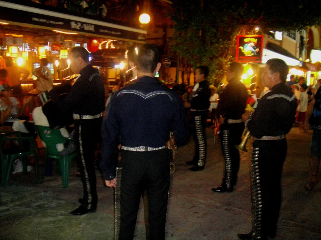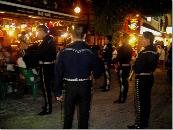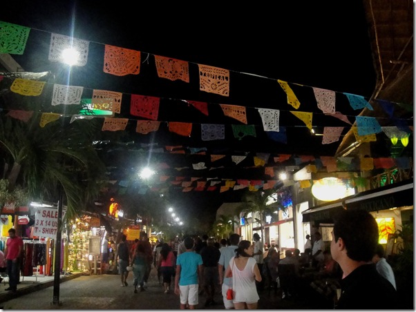 A vida noturna em Playa del Carmen é agitada.  E tem para todos os gostos: música eletrônica, música ao vivo, ambiente para famílias, para casais ,ambiente para azaração… Tudo gira praticamente em torno da 5a. Avenida, uma rua exclusiva para pedestre com muitas lojas, restaurantes e bares.Se ontem postei só restaurantes mais bacanas, a rua é cheia também (aliás, são a maioria) de restaurantes mexicanos, alguns argentinos, alguns turisticões, outros bem simples, bares de tequila… uma mistureba só. E tudo isso, em meio a lojas bacaninhas (Tommy Hilfinger, Diesel, Villebrequin, Oakley,Birkenstock, importadoras de perfumes e relógios …) , lojas de artesanato e souvenir, e muita lojinha de bechwear.