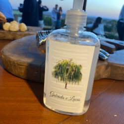 Logo na entrada da fazenda, há um corredor de chorões e essa foi a identidade visual da festa, presente em todos os detalhes e na papelaria.