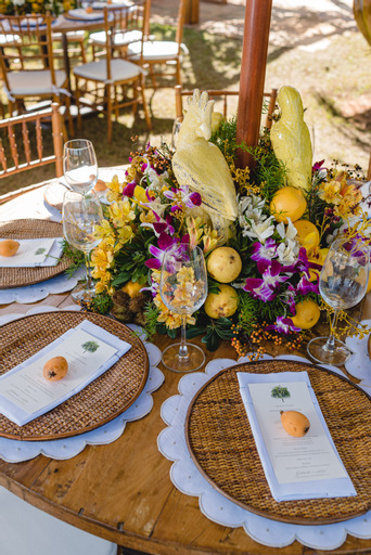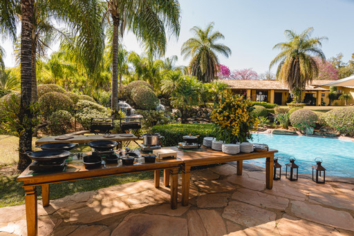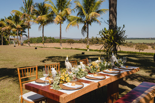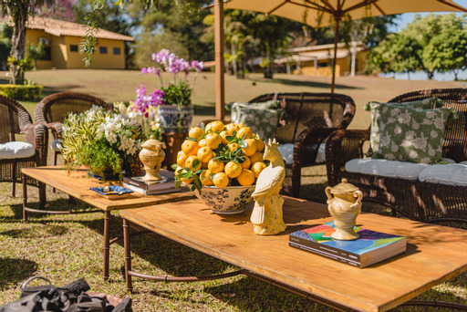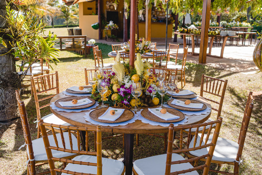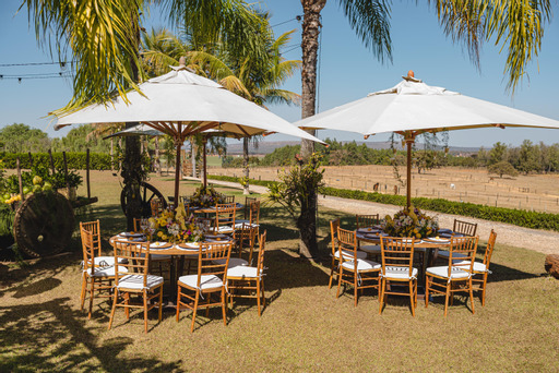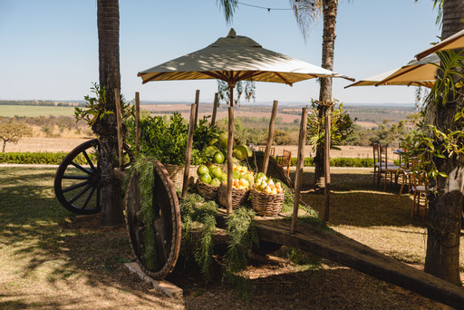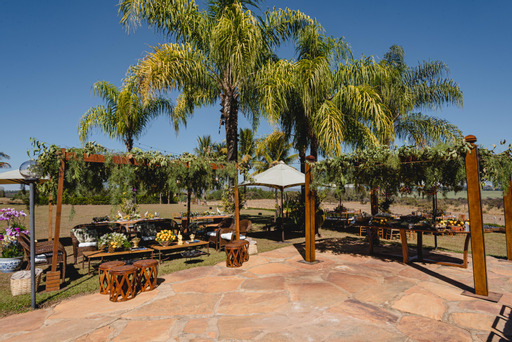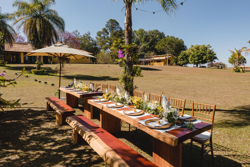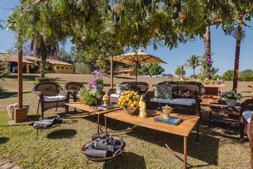 A fazenda já é uma beleza por si só , portanto  a ideia era fazer uma festa no gramado com um decor que valorizasse o local.