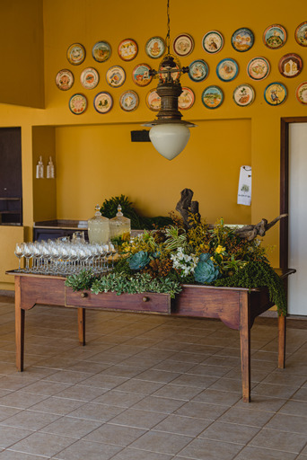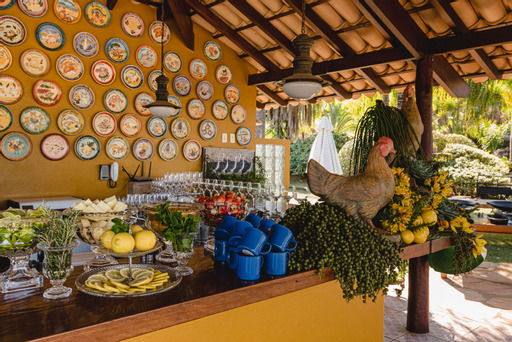 Todos os buffets, bares, receptivos mantinham a mesma linguagem do verde, limão, pássaros e flores amarelas