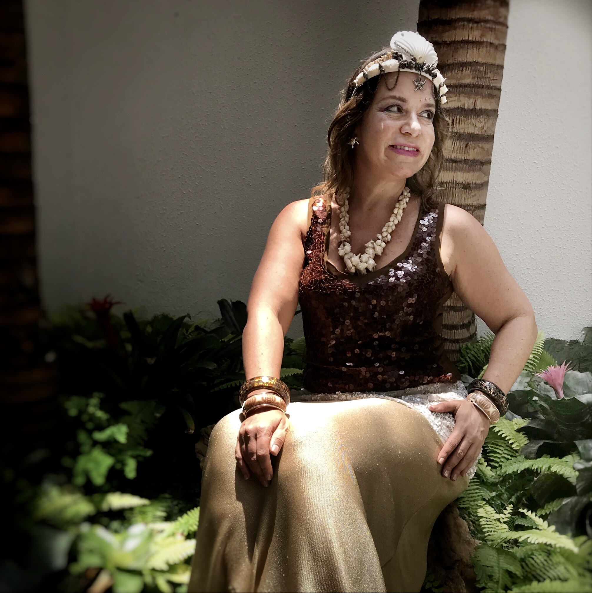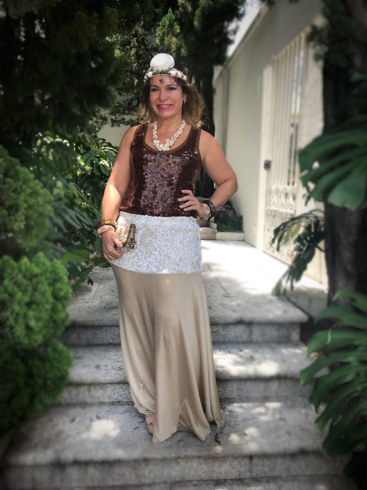 Eu parti de um acessório de cabelo que minhas filhas trouxeram para mim do Rio para pensar na minha sereia. Combinei com um colar de conchas que eu já tinha da Bahia e usei com minhas próprias roupas.