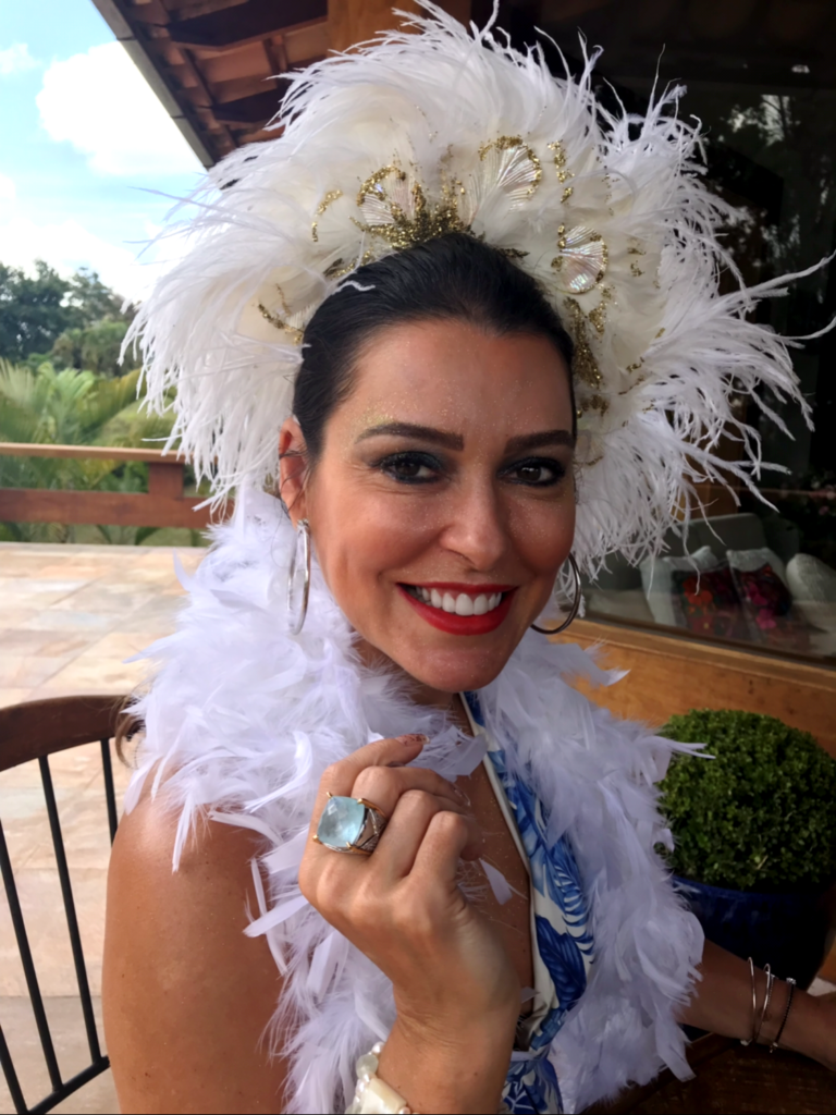 Cris foi de Rainha da Portela. Plumas brancas, make linda e um vestidão azul e branco. Anel JOIAS PD.