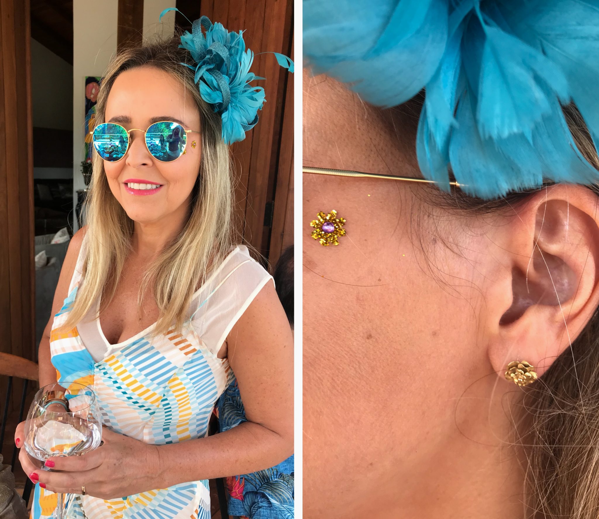 Ju foi de “psicodélica”. A padronagem do tecido + o arranjo + óculos espehados deram o tom.