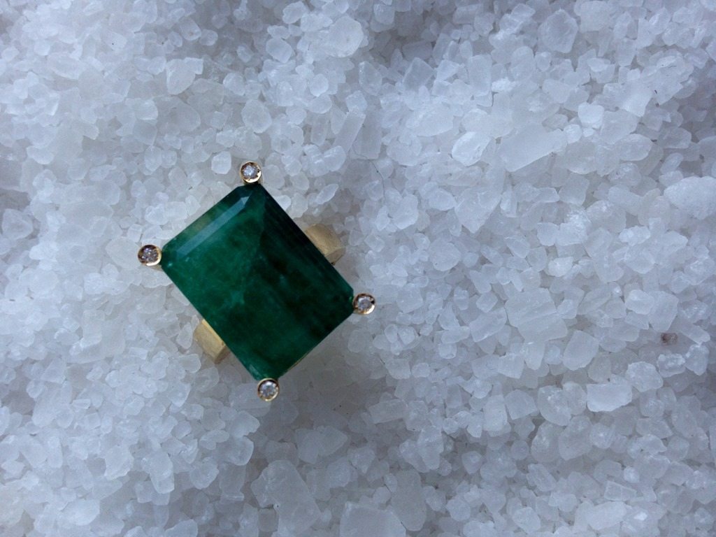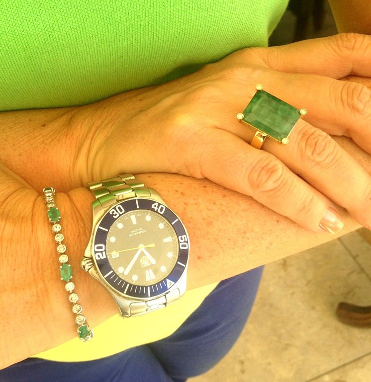 anel em esmeralda natural e brilhantes ——— 10 x 360,00 = 3600,00