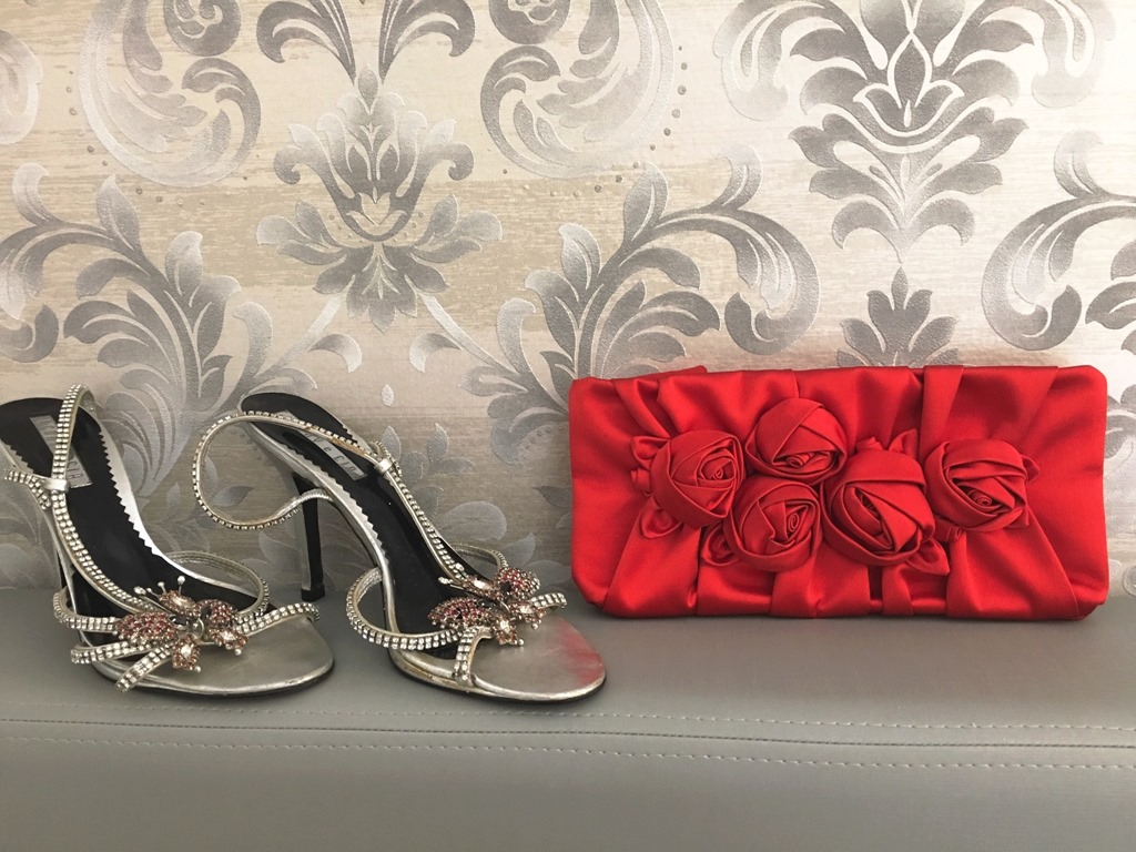 Esses foram os complementos que escolhi para o vestido de renda vermelho TAHARI