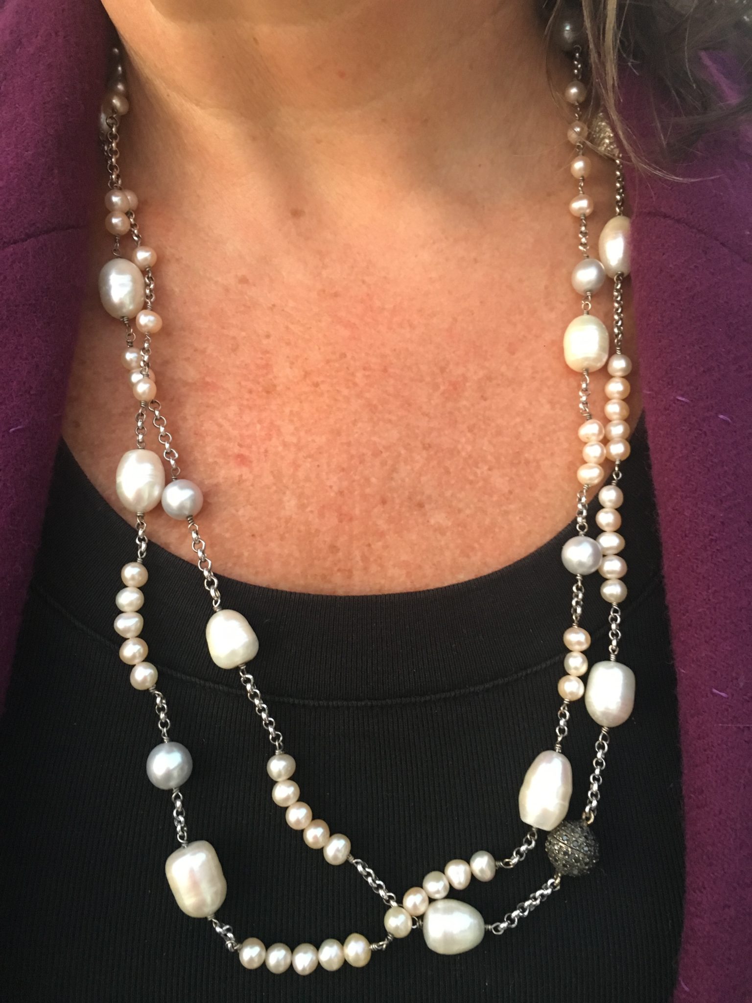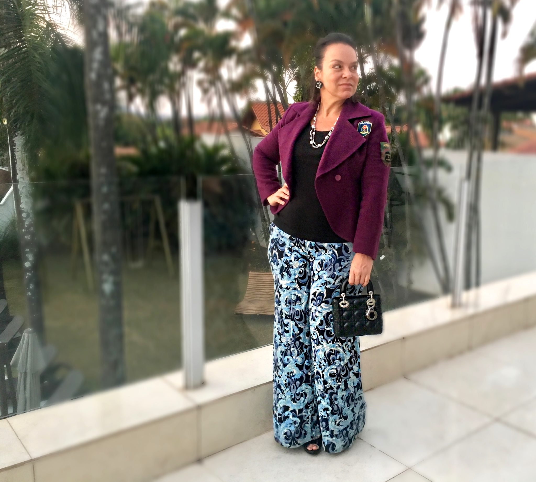 Nessa noite, usei esse look quentinho, pois o inverno continua pegando a gente, né? Misturei esse BRINCO NOITE com um fio longo de pérolas usado em duas voltas. Fez um contraste bacana entre o moderno e o clássico, vocês não acham?