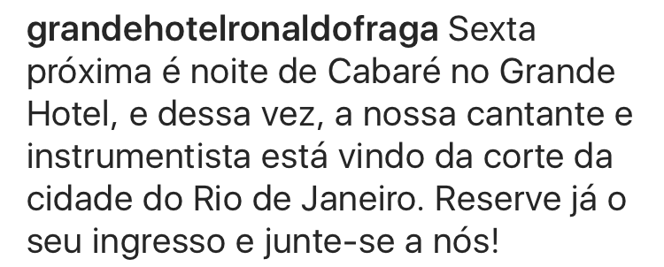 Vale a pena seguir o instagram @GRANDEHOTELRONALDOFRAGA para acompanhar a programação. O local funciona também como loja, antiquário e barbearia diariamente até as 19 horas.