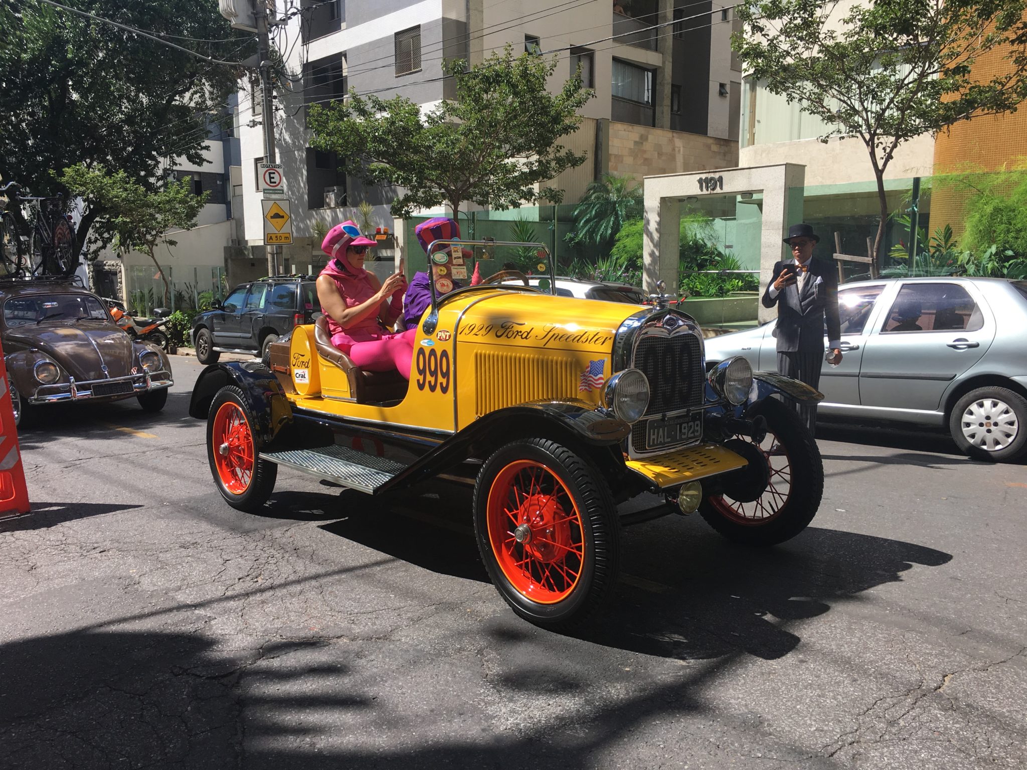 Mas … na verdade, olha como as pessoas foram! Lindamente caracterizadas passeando em meio aos carros antigos. O cortejo saiu da Praça da Liberdade em direção ao Grande Hotel.