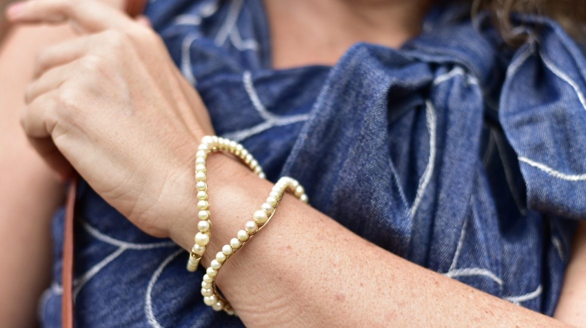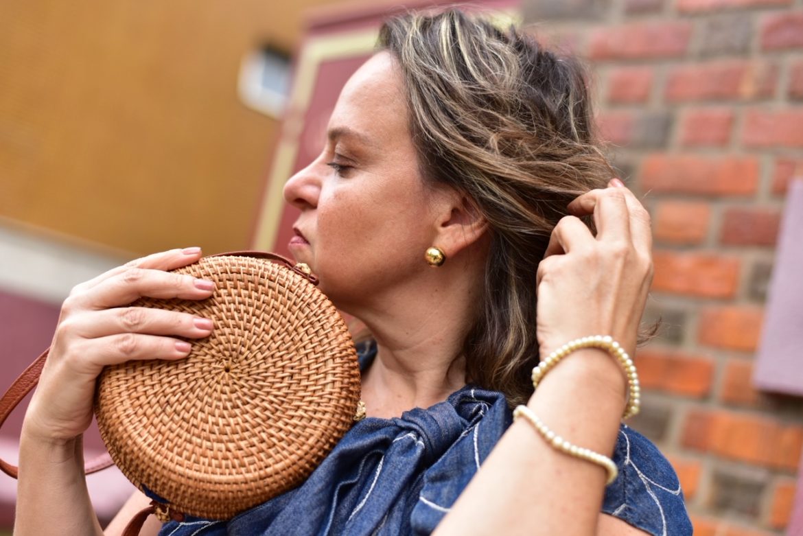 Nesse dia, para programa diurno, usei ainda com bolsa de palha e espadrilles, e ainda braceletes de pérolas JOIAS PD .