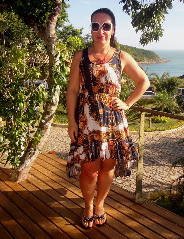 Esse vestido estampa lenço da OBA foi comigo para Búzios, pois é bem fresquinho e está nessa onda do