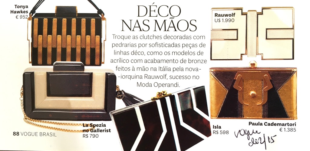 Não parece uma coisa “ vovozinha “ ??? rsrs Pois bem estou doooida para usar algo assim, já que estou a caminho da Itália, berço da moda e terra da GUCCI. Vou usar mix de estampas abaixo + clutch geométrica, outra super tendência na VOGUE dezembro.