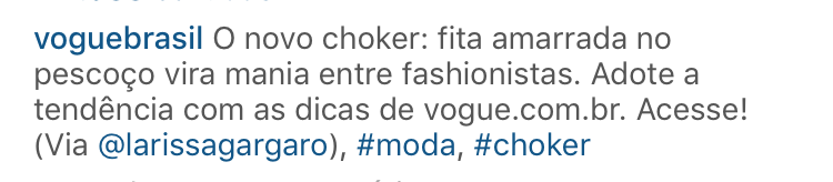 Outra tendência bacaninha a custo zero é essa faixa no pescoço. Até a fashionista TORY BURCH já está usando ! Vou levar na mala: não pesa nada e dá um toque fresh no ato!