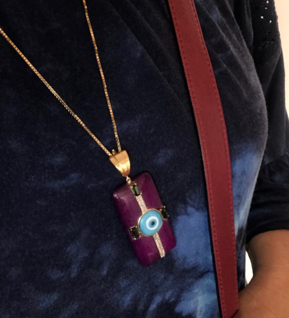 Pingente àgata JOIAS PD combinando super com as cores do look. Atenção ao TIE DYE , super em alta na moda nesse verão 2020. Dessa vez , ousei misturando essa blusa com saia de tie dye , uma overdose! rsrs