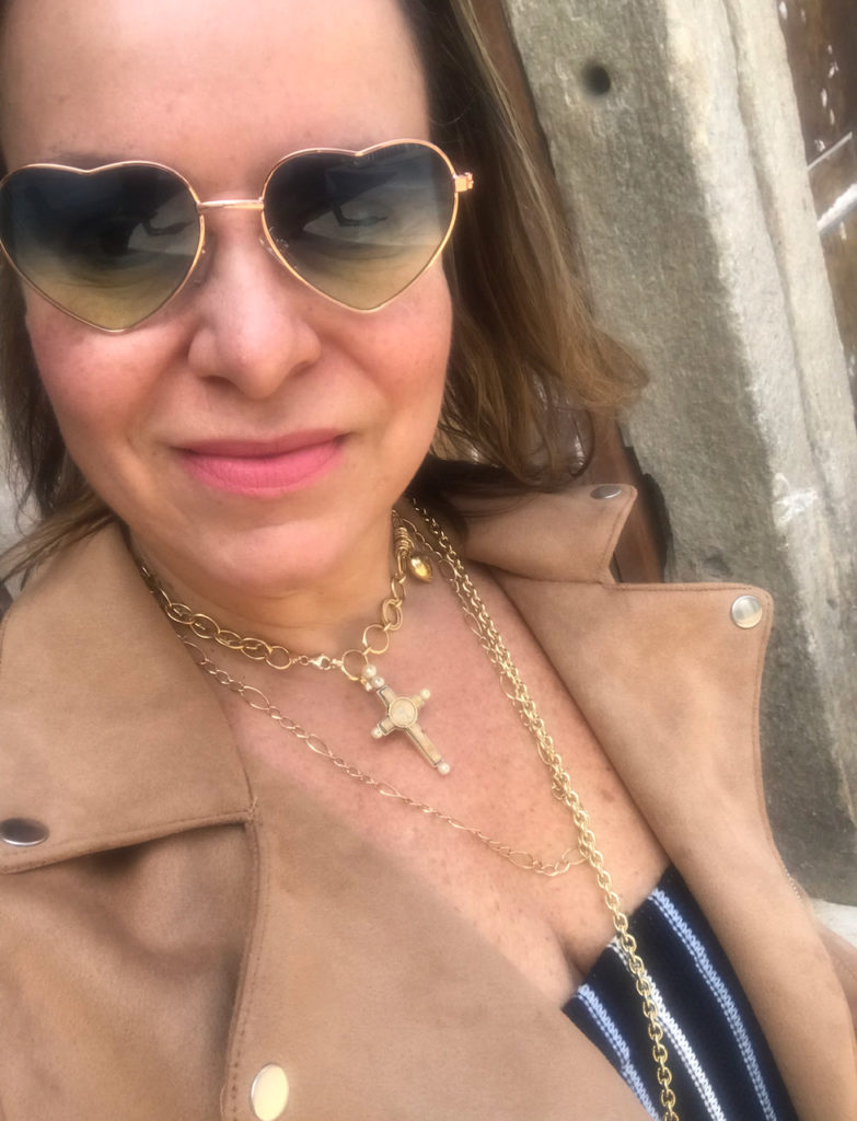 Usei a cruz da COLEÇÃO ANTIQUÁRIO em meio a correntes de ouro fazendo um mix interessante e moderno, mesmo sendo uma peça do séc XIX/XX .