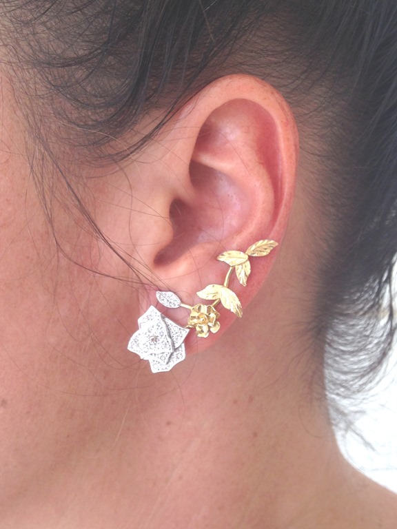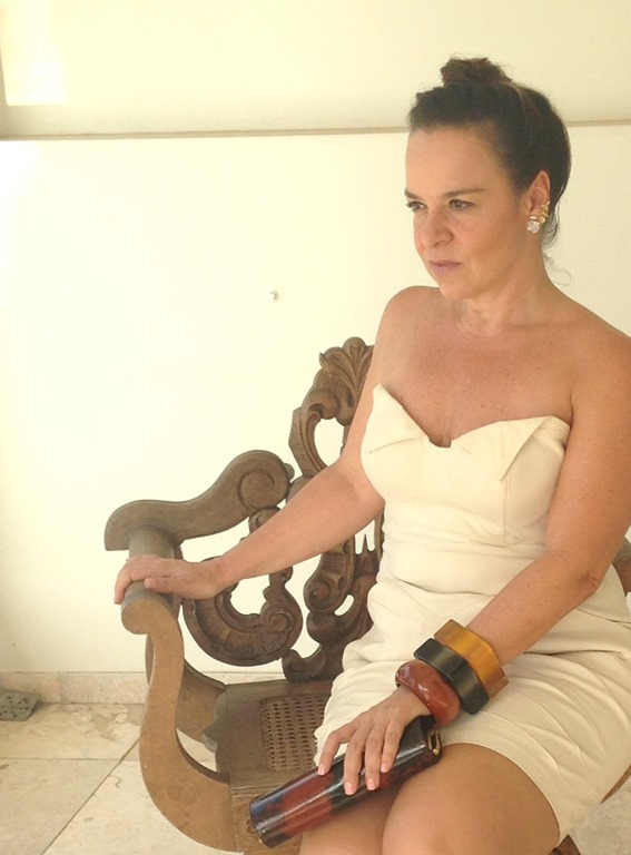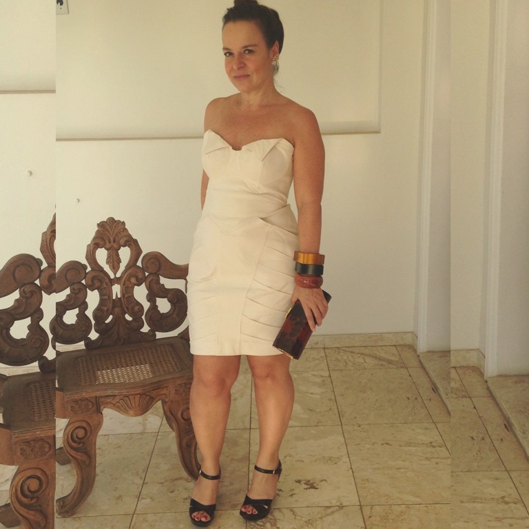 vestido VITOR DZENK para TAHARI – clutch JIMMY CHOO – sandália PYRAMIDS – braceletes acervo – brinco EARCUFF ROSAS JÓIAS PD ( sucesso dessa coleção )
