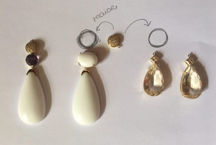 Esse outro brinco foi reformado para uma cliente com as pedras dela, e ela não para de usar. Bom, né? Veja AQUI .