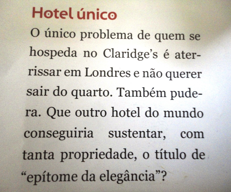 Ah! Dizem que o hotel THE CONNAUGHT é excelente também, mas eu optei pela “legend” : CLARIDGE´S !