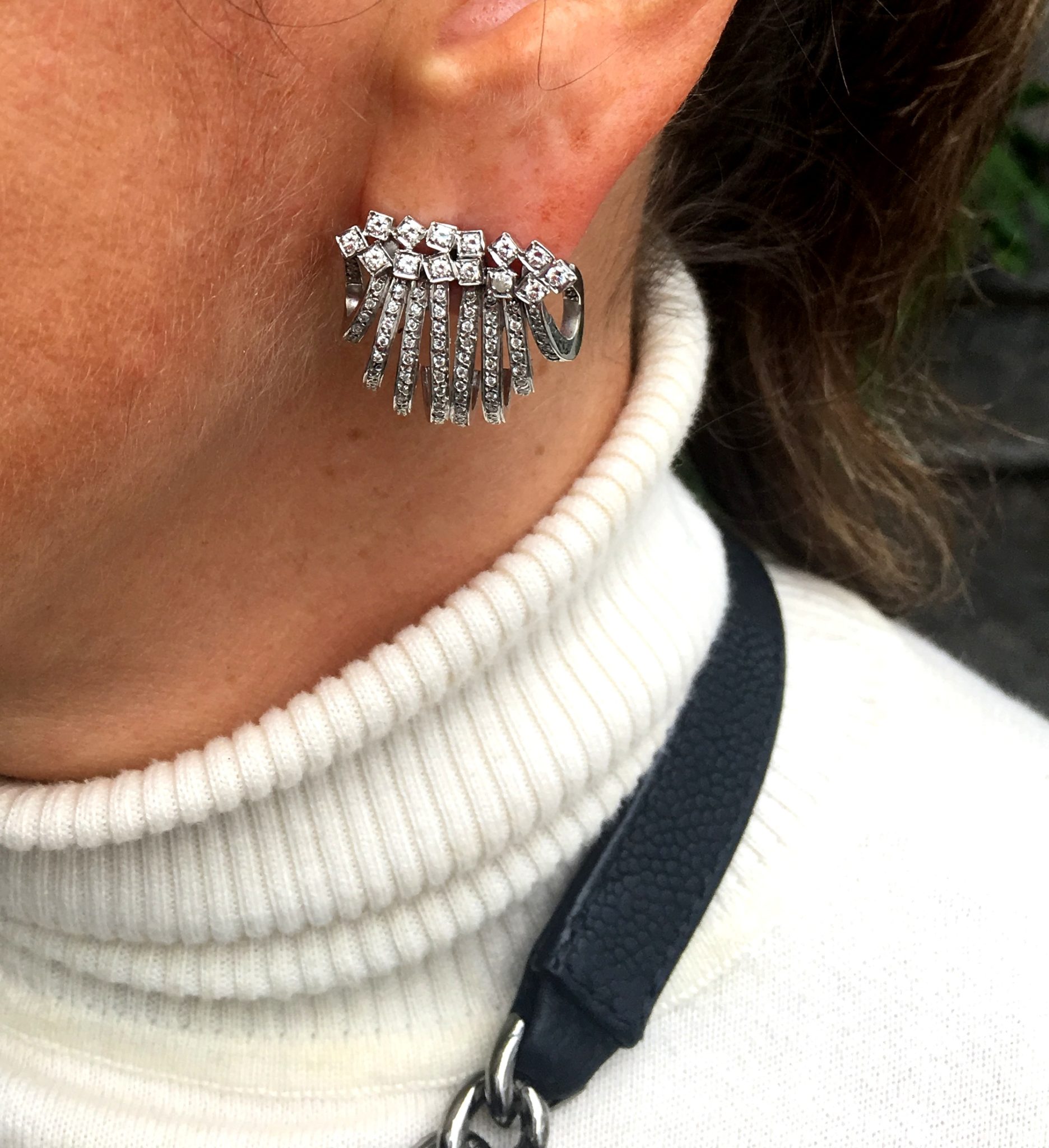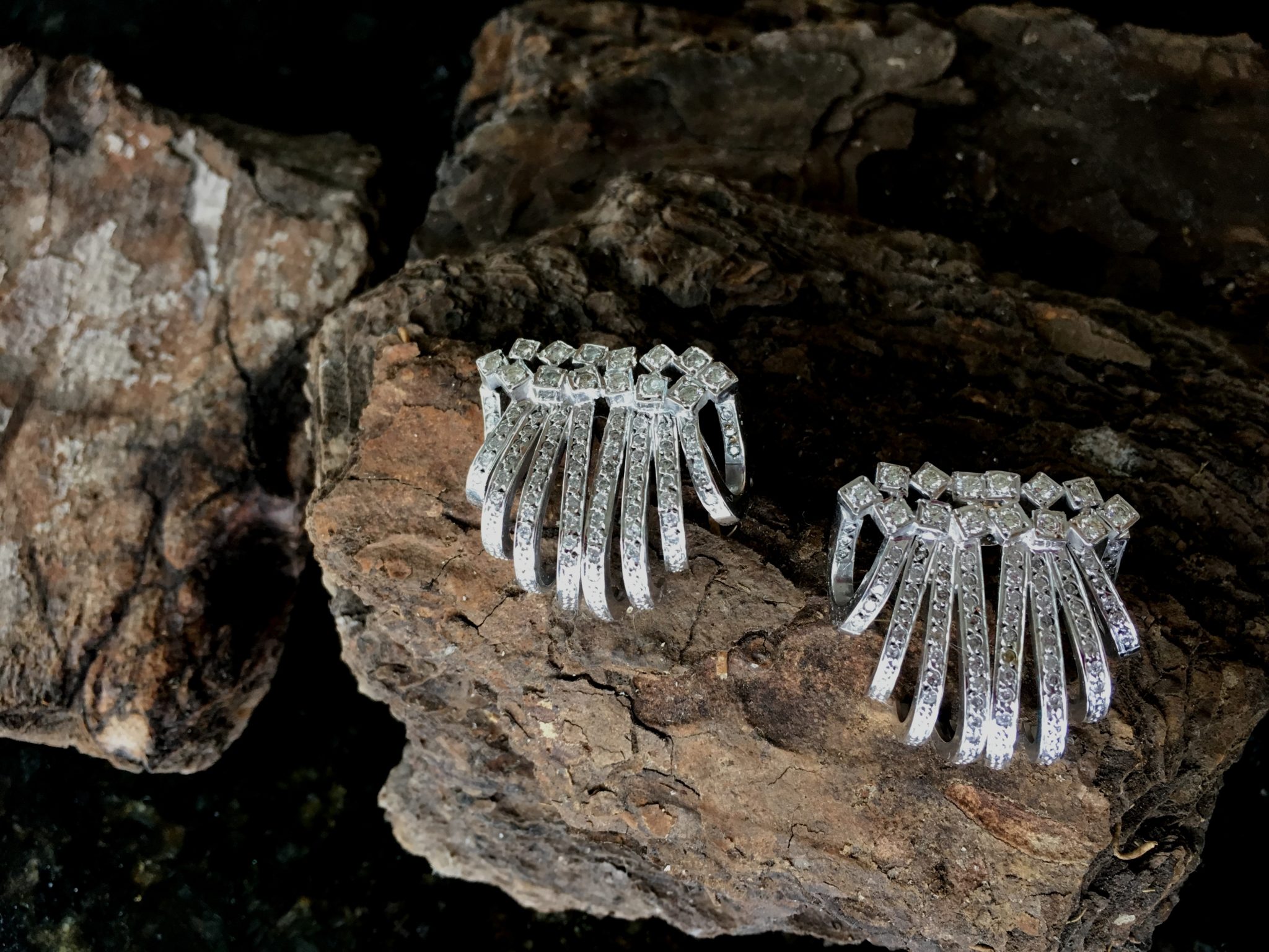 Por ser todo de brilhantes, não só assume looks mais classudos, como também vai a festas, quando a gente precisa de um brinco chegado na orelha. O mais importante é que ele veste bem, viu? Abraça o lóbulo da orelha, envolvendo-o por baixo.