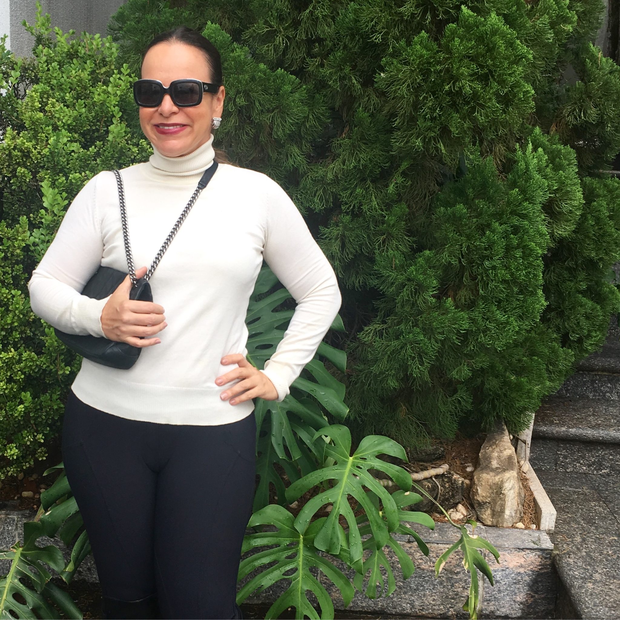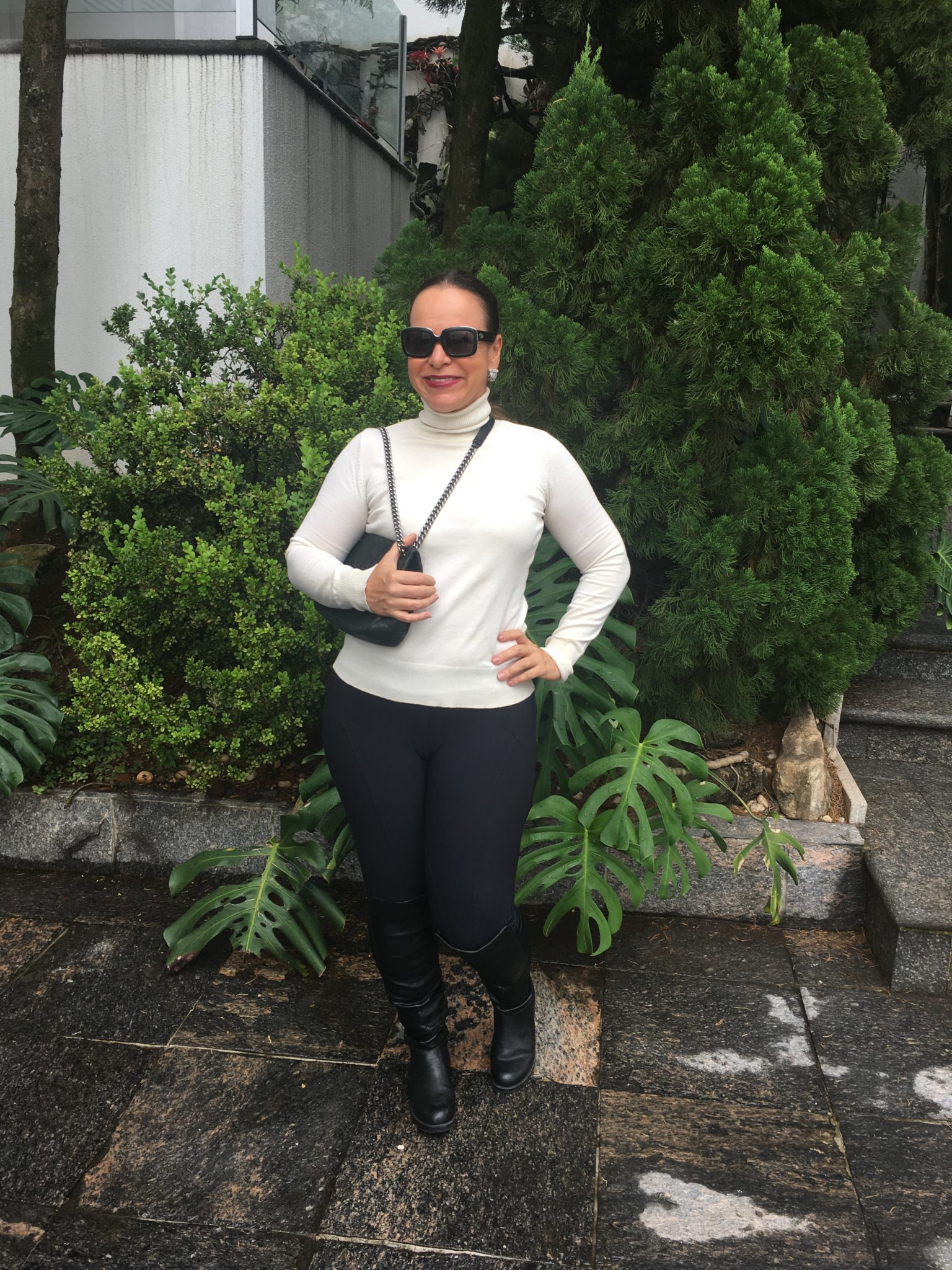 De dia, usei fuseau preta com bota montaria e um tricõ gola rolê. Entretanto, uma única joia : O brinco!