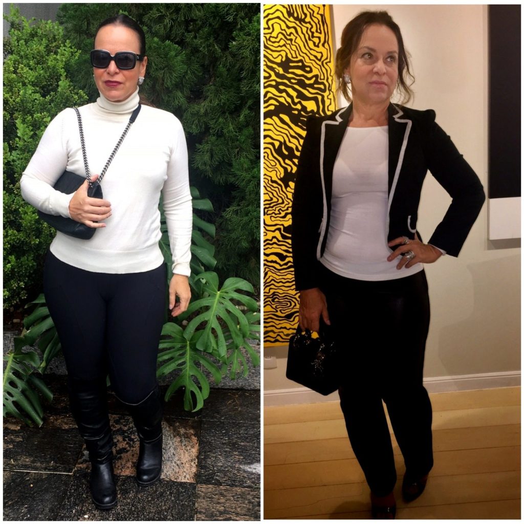 Em um dia desses de abril, aproveitei que o friozinho começou dar as caras para usar aqueles clássicos looks P&B e brilhantes que são a cara da estação.