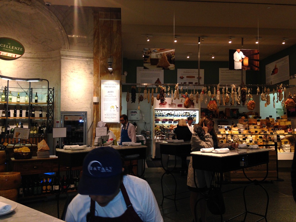 Outro mercado suuuper legal é o EATALY – uma rede italiana de “mercados gastronômicos” cuja filial de Nova York virou atração turística. O 1o. EATALY abriu em 2007 nos arredores de Turim, aproveitando o galpão de uma fábrica desativada do vermute Carpano. Só depois de consagrado em seu país de origem o conceito chegou a Nova York, em 2010, num empreendimento capitaneado pelo chef Mario Batali (do Del Posto e Osteria Mozza,entre outros).