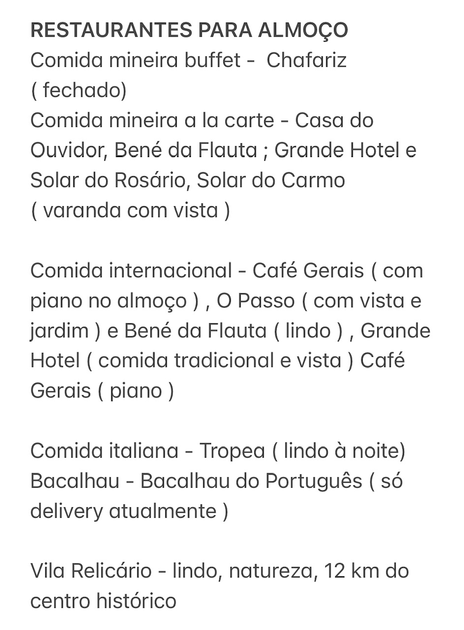 RESTAURANTES DE OURO PRETO