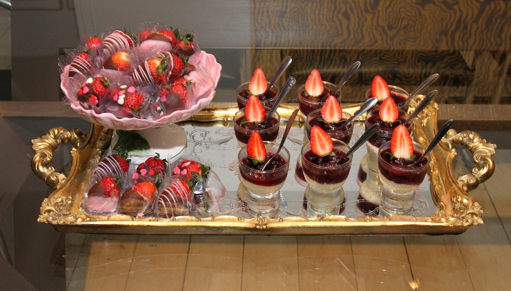 Que tal esses doces cor-de-rosa também? panacota com frutas vermelhas e bombons de morango