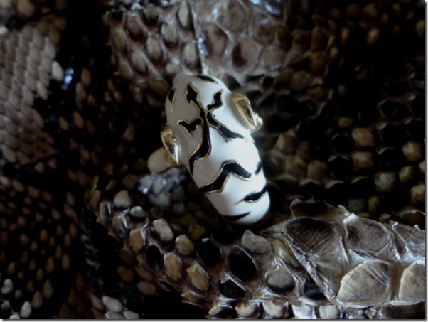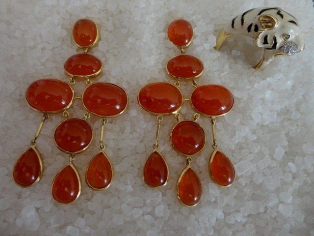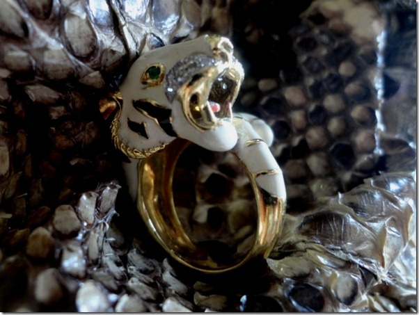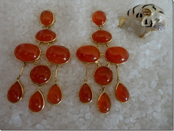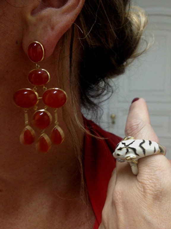De jóias, um brinco também em tom quente e um anel de pantera – Hello feras todas !! –