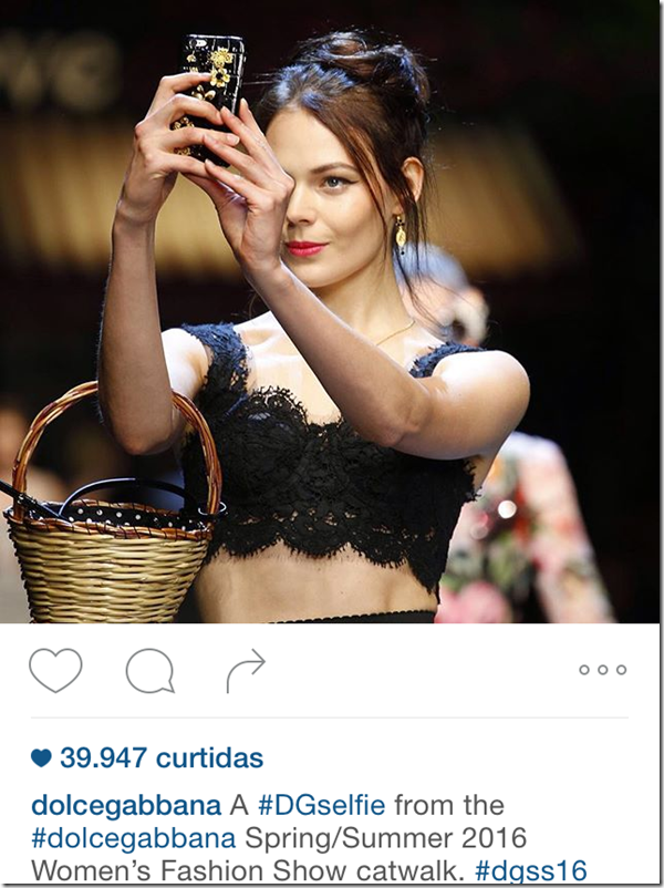 Os desfiles da dupla são sempre um arraso, assim como as festas depois. A novidade dessa vez ? As modelos fazendo selfies ao vivo na passarela mesmo e as imagens sendo transmitidas na hora em telões gigantescos para todo mundo ver!