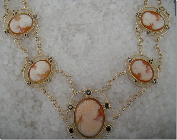 A mãe da Patricia Barbini comprou esses camafeus na Europa ,e ela pediu para montar um colar para ela, peça bem especial. Comecei a pensar nos desenhos e introduzi brilhantes negros na peça para enriquecê-la , mas mantendo esse ar “ antiguinho “ very very chic !
