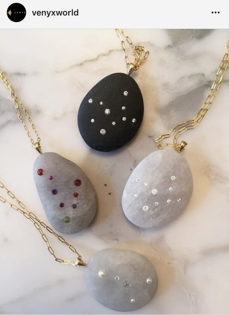 Venyx World – essa joalheria italiana é desenvolvida por Eugenie Niarchos , uma it girl européia cheia de personalidade. Ela acaba de soltar essas peças em pedras vulcânicas simbolizando os signos do zodíaco. Os diamantes e pedras preciosas são colocados exatamente onde as estrelas existem nas suas respectivas constelações.