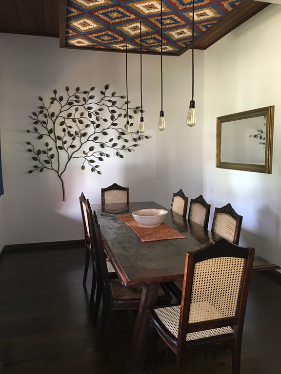 Diante desse cenário, a casa se encaixa perfeitamente. Mesmo a construção sendo nova após tantas ampliações, o jeitinho mineiro foi mantido através das varandas,  paredes rústicas, algum mobiliário antigo e várias peças trazidas de Tiradentes, que dão o charme do decor.