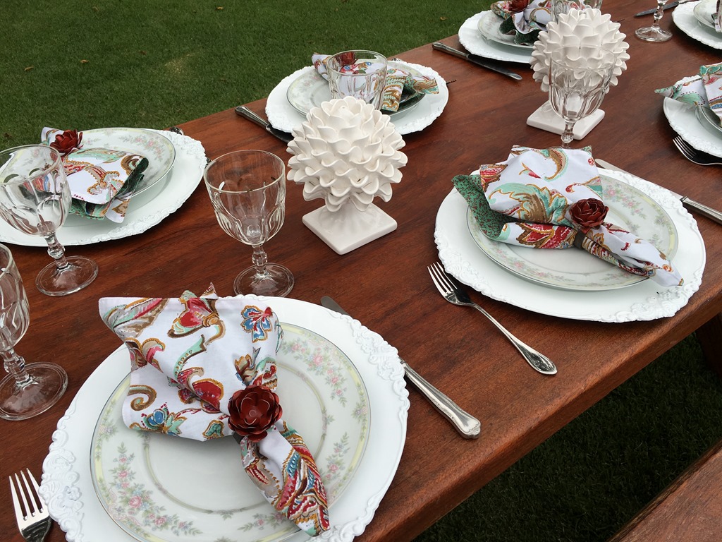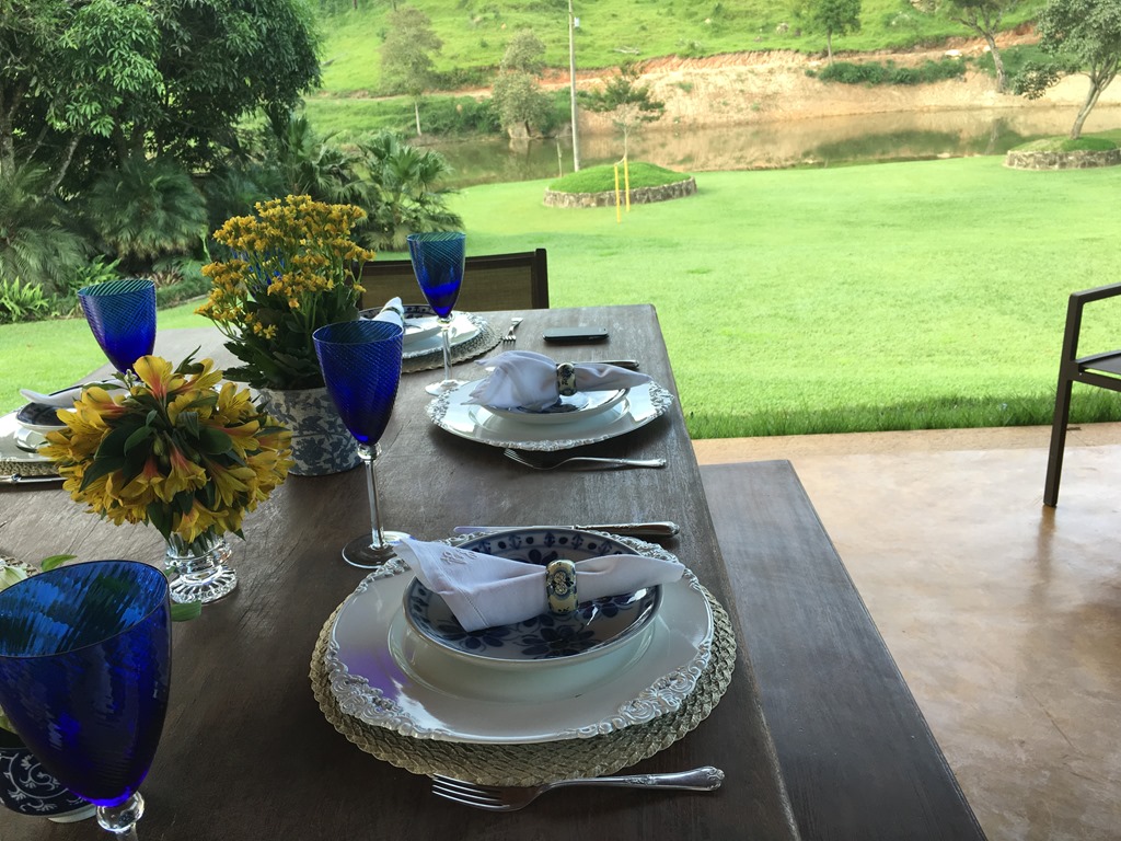 O almoço é servido á beira da lagoa e o capricho se repete em todos os detalhes.